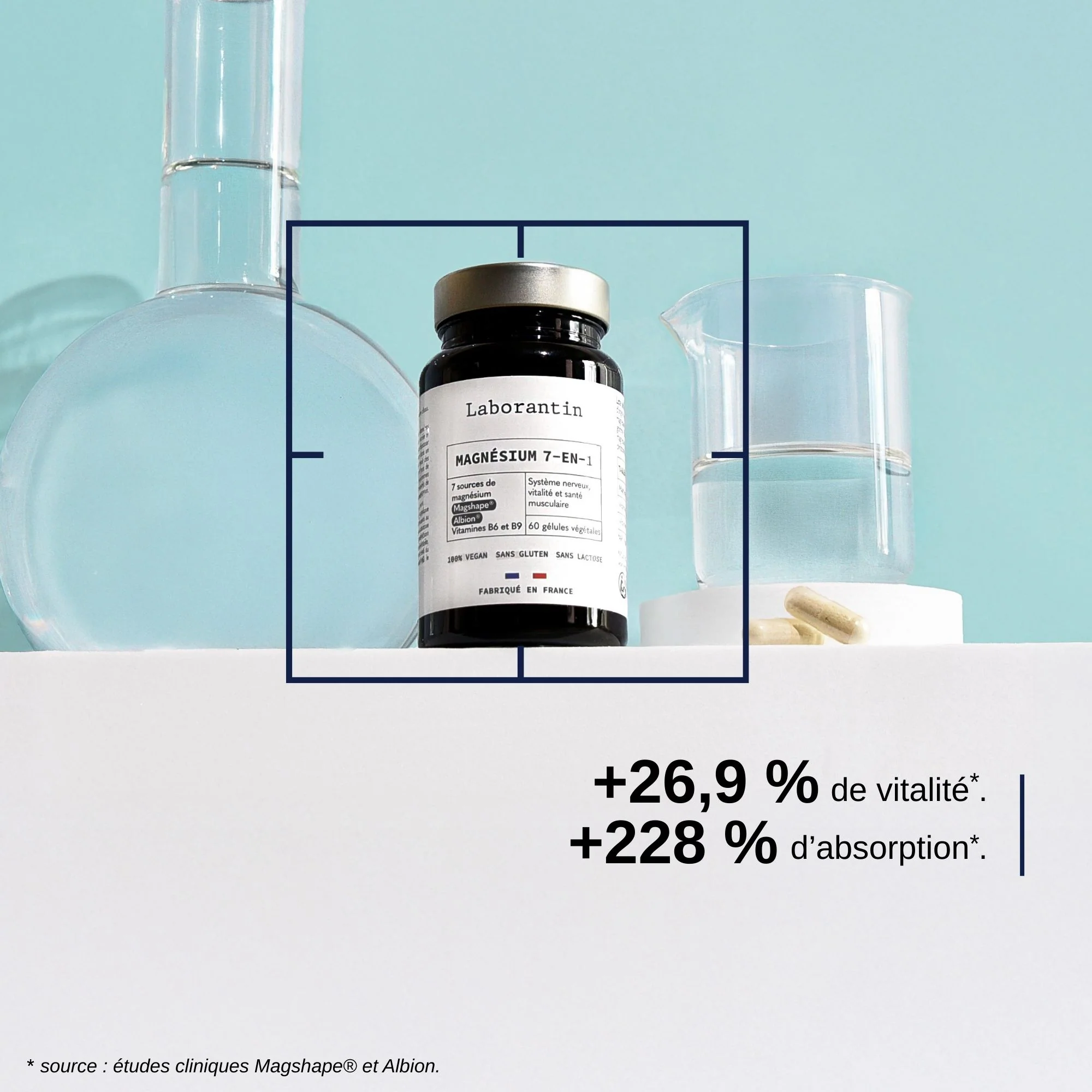 Magnésium 7-en-1 est une formule complète qui associe 7 sources de magnésium hautement biodisponibles, dont deux brevetées Magshape® et bisglycinate Albion®, connues pour leur excellente assimilation et haute tolérance digestive. Enrichie en vitamines B6 et B9, cette combinaison innovante soutient efficacement l'équilibre nerveux, la vitalité et la santé musculaire. Elle aide également à réduire la fatigue et à maintenir les fonctions cognitives, tout en offrant une absorption optimale pour un bien-être global.