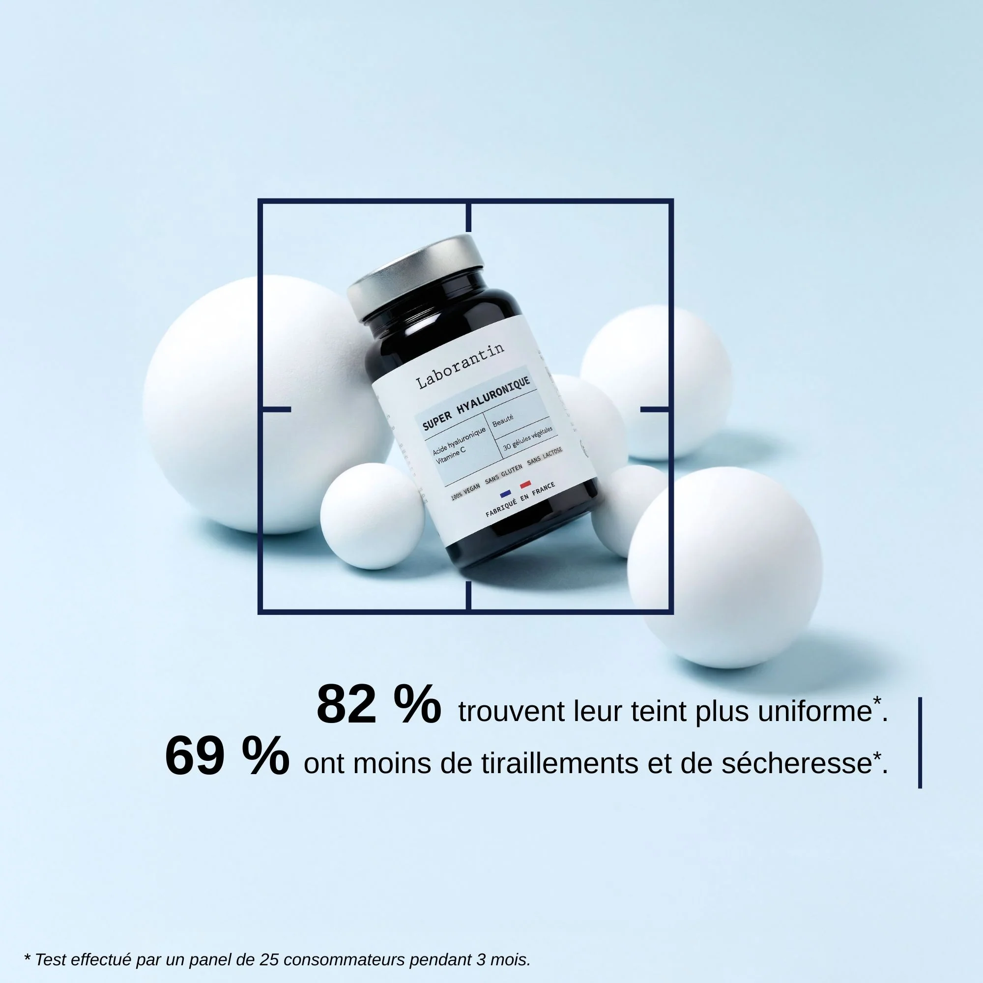 Hautement dosé en acide hyaluronique et en vitamine C, Super Hyaluronique lutte contre le vieillissement cutané et préserve l'élasticité de la peau. Il contribue à hydrater la peau en profondeur tout en boostant la production de collagène.